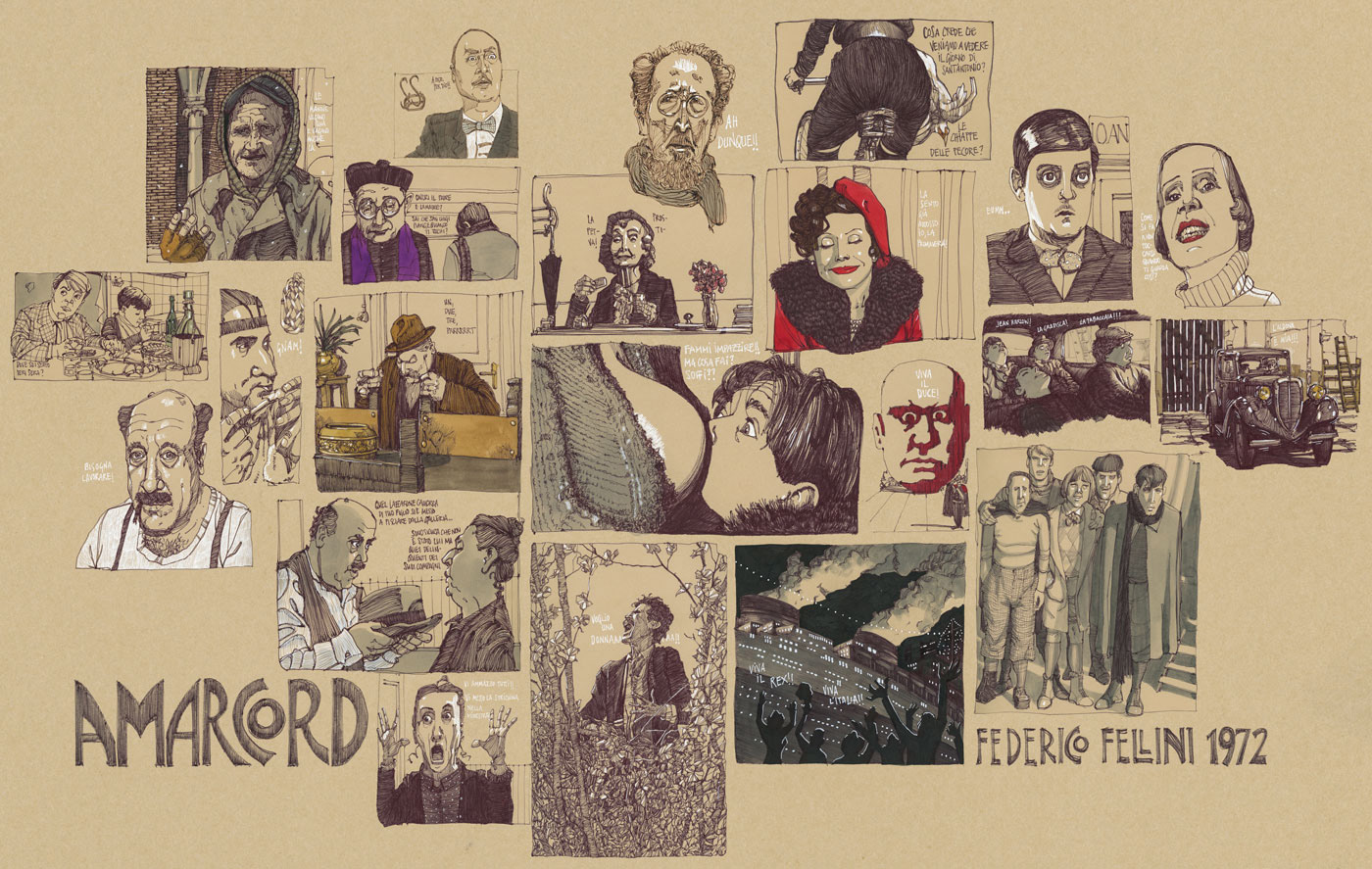 This poster paying tribute to Federico Fellini's Amarcord was my contribution to the exhibition "RODANDO, una historia del Cine Europeo" (FILMING, a history of the European Cinema). Sevilla, october-november, 2018.