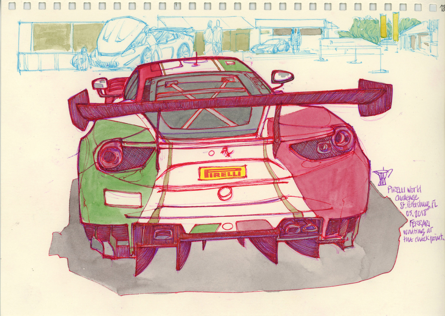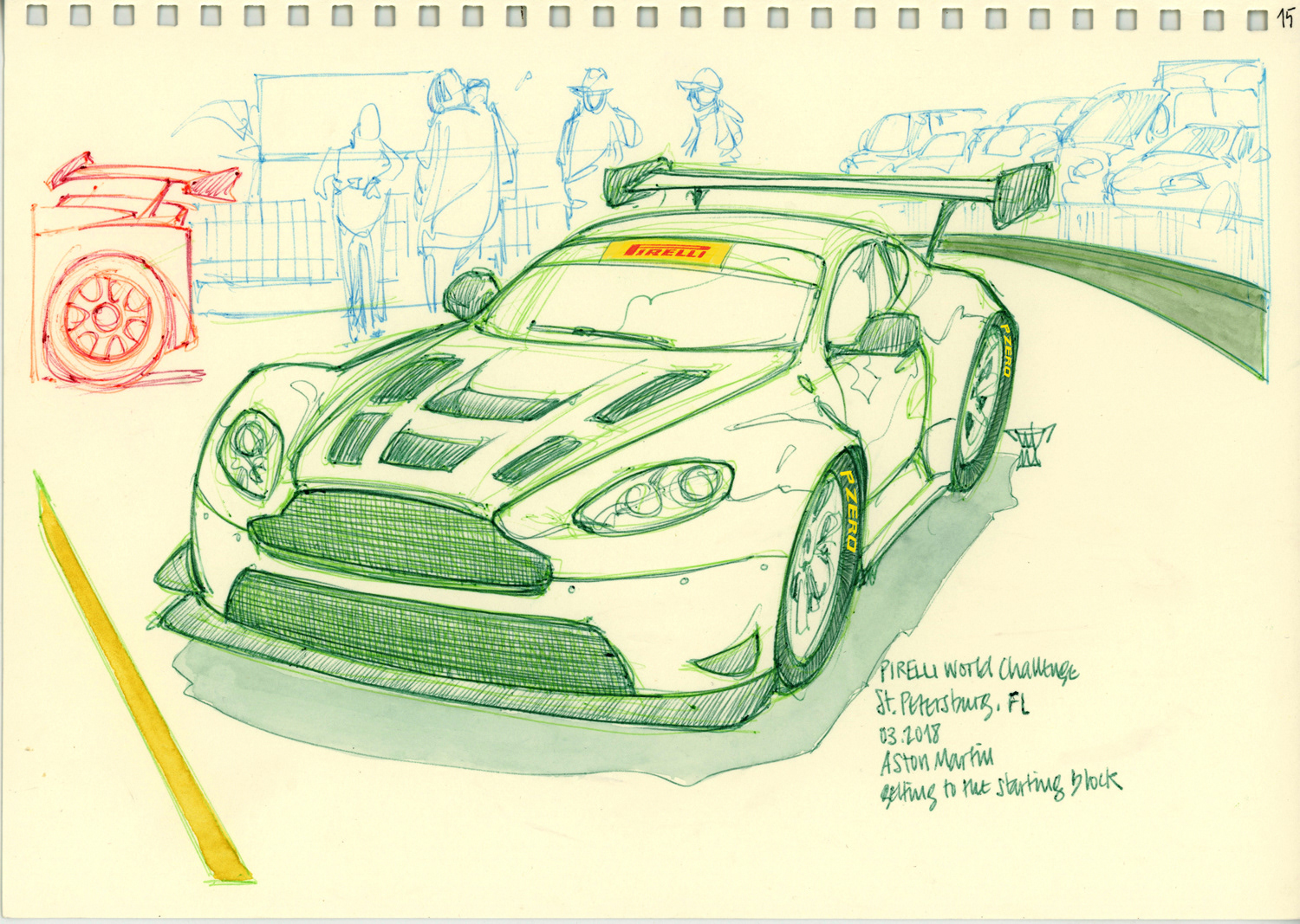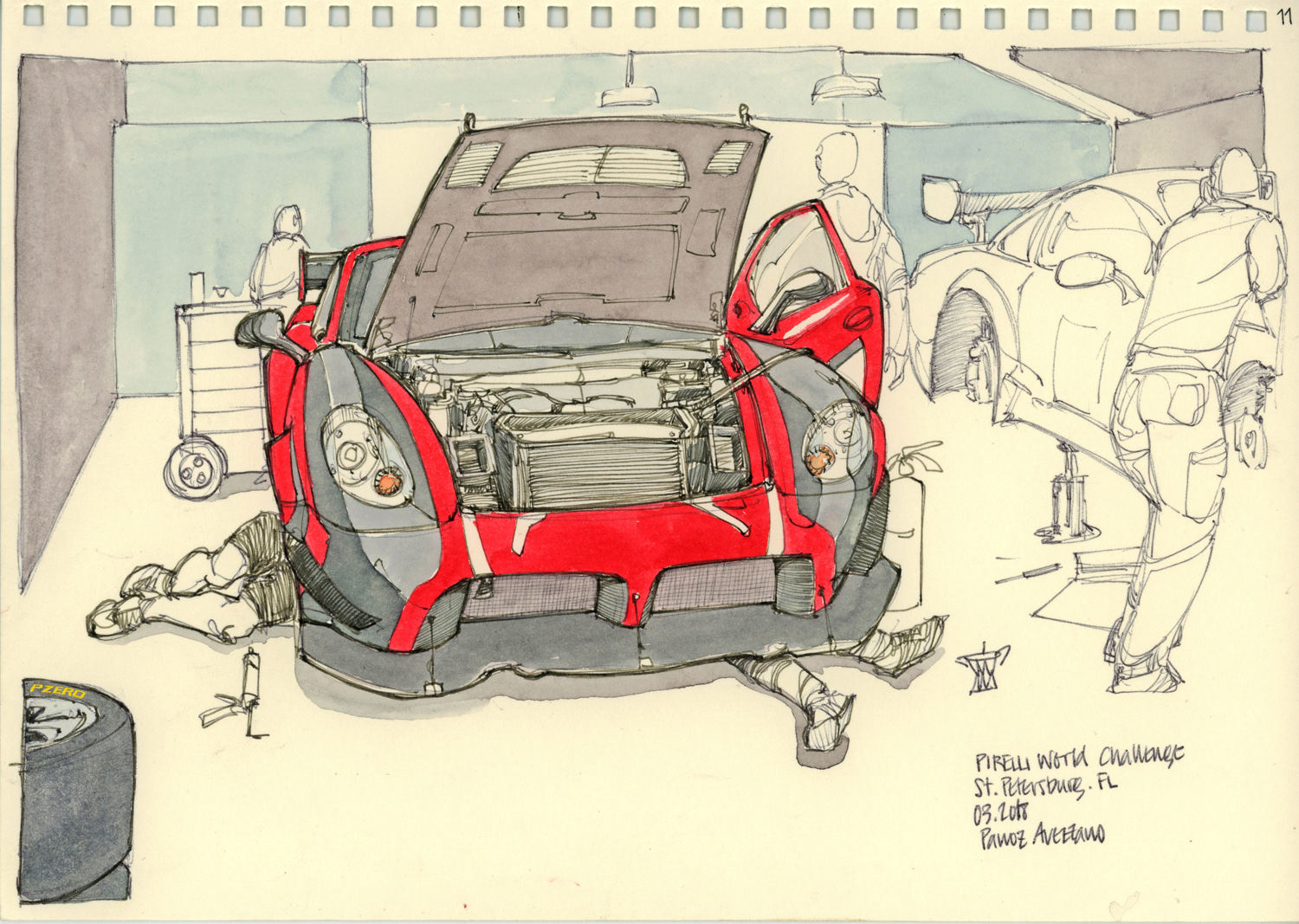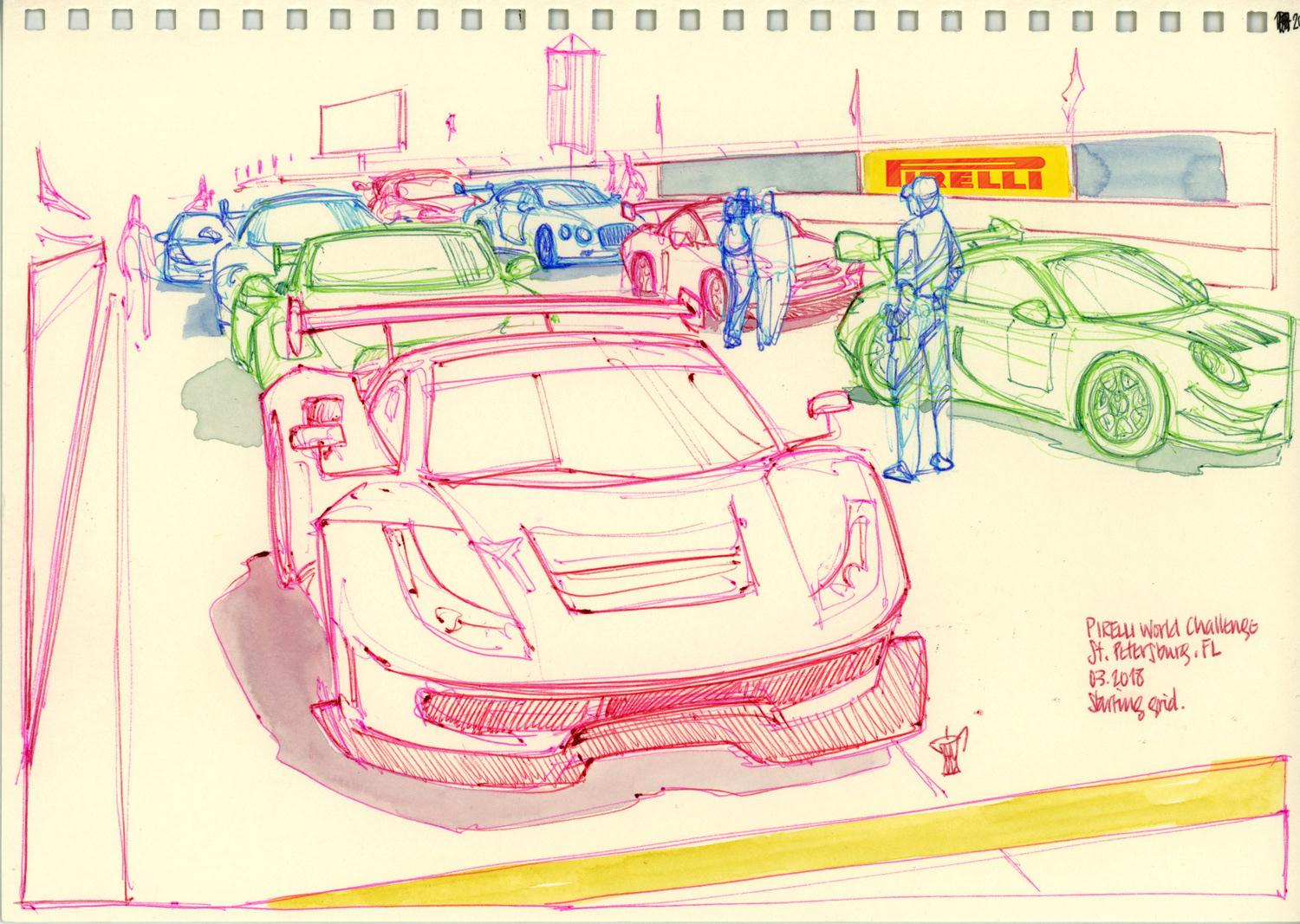 Drawings made live on location at the Pirelli World Challenge races