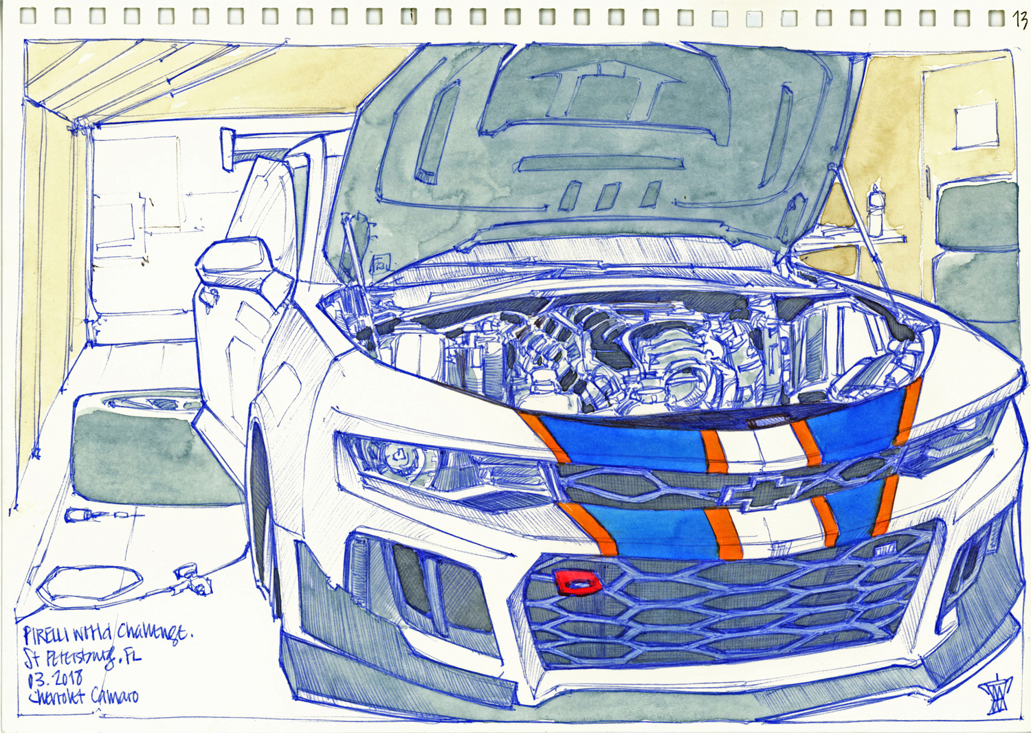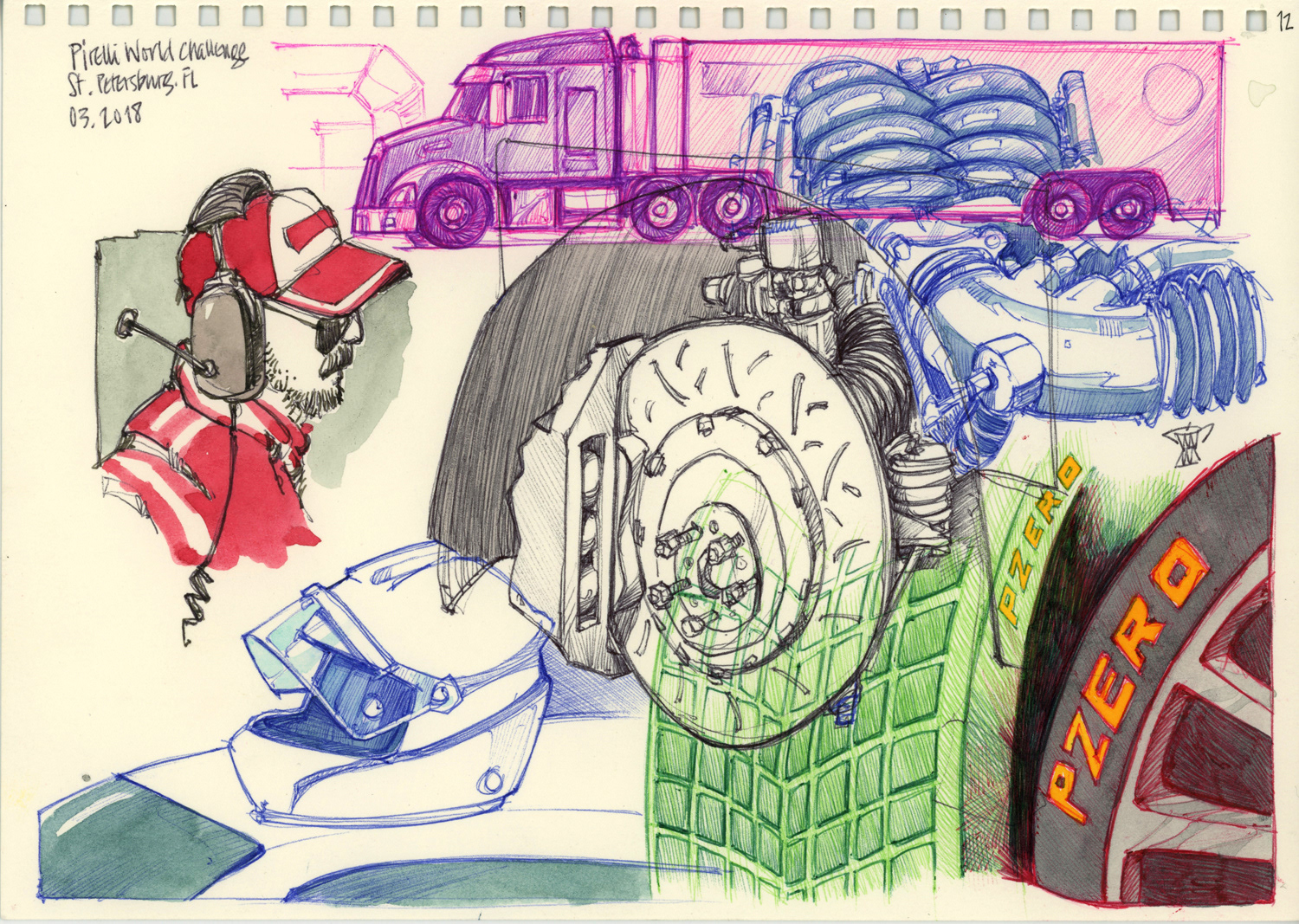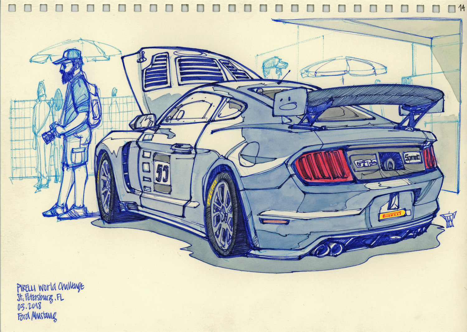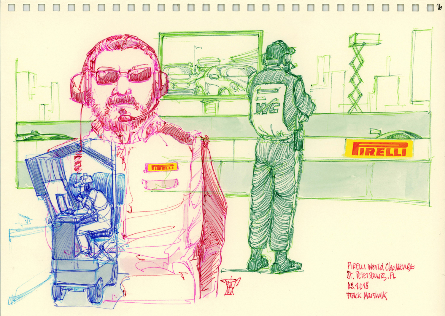 Drawings made live on location at the Pirelli World Challenge races