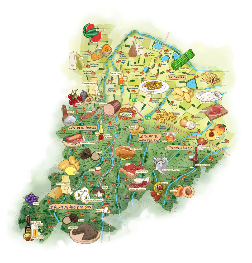 A food map of Emilia-Romagna.