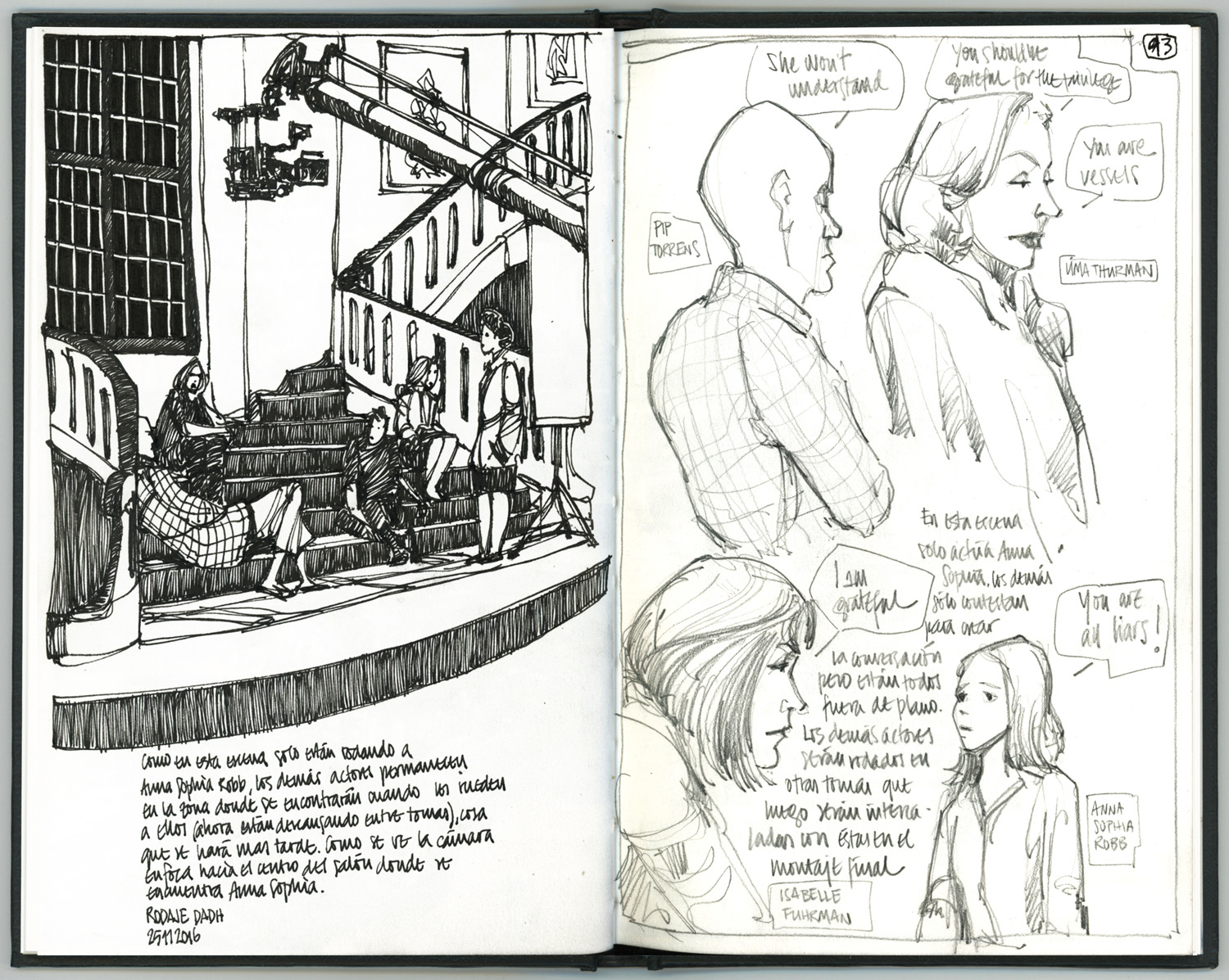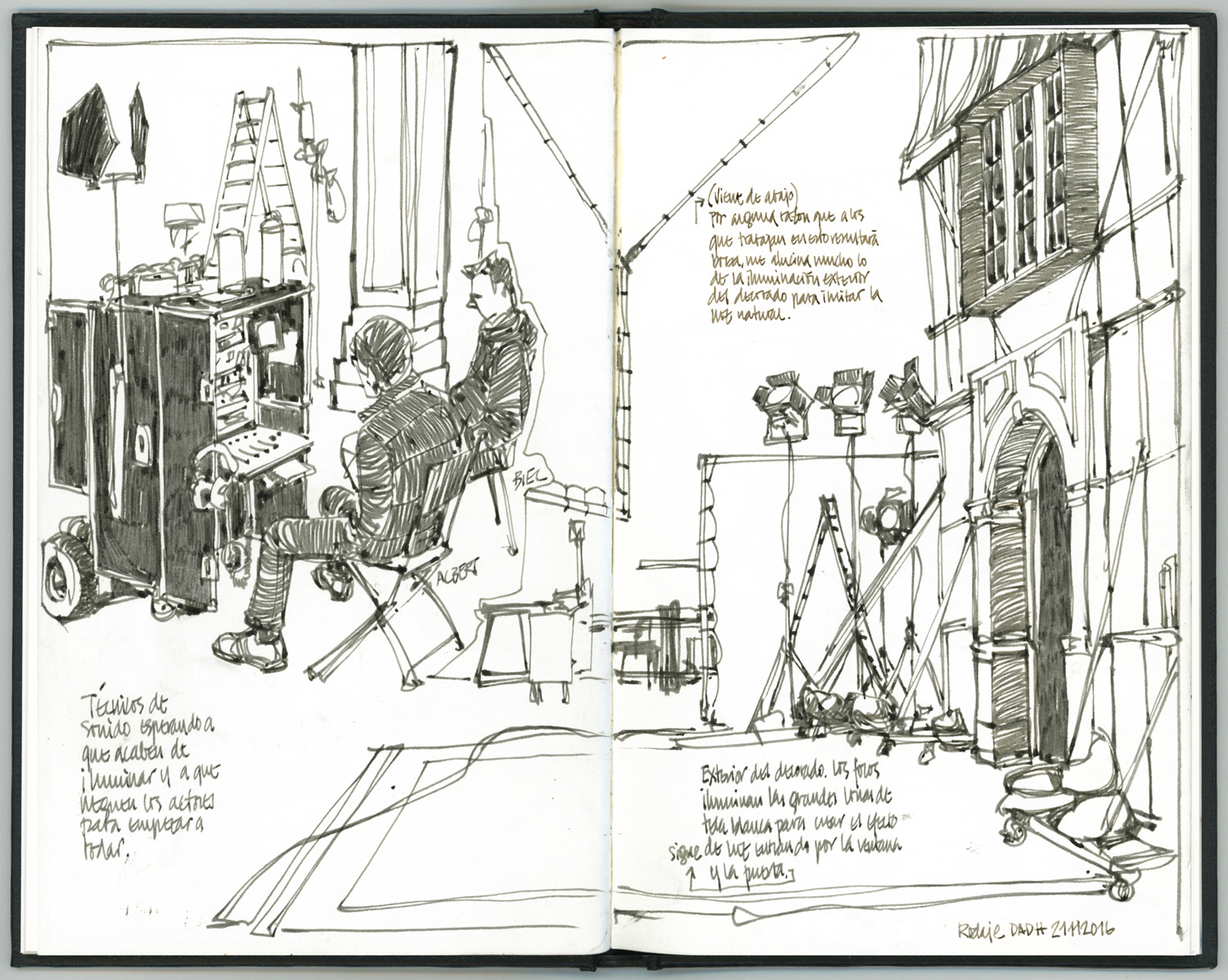 Drawings made live on location at the movie set.